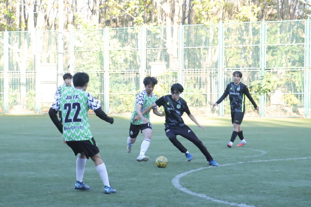 本次比赛共有来自19个学院的300余名运动员参赛,包含男子组和女子组两个组别。赛场上,球员们默契配合、奋勇拼搏。抢断、传球、射门等动作行云流水,展现出同学们扎实的足球功底和良好的体育风貌。场外,啦啦队呐喊助威,观众席掌声不断,现场氛围热烈。