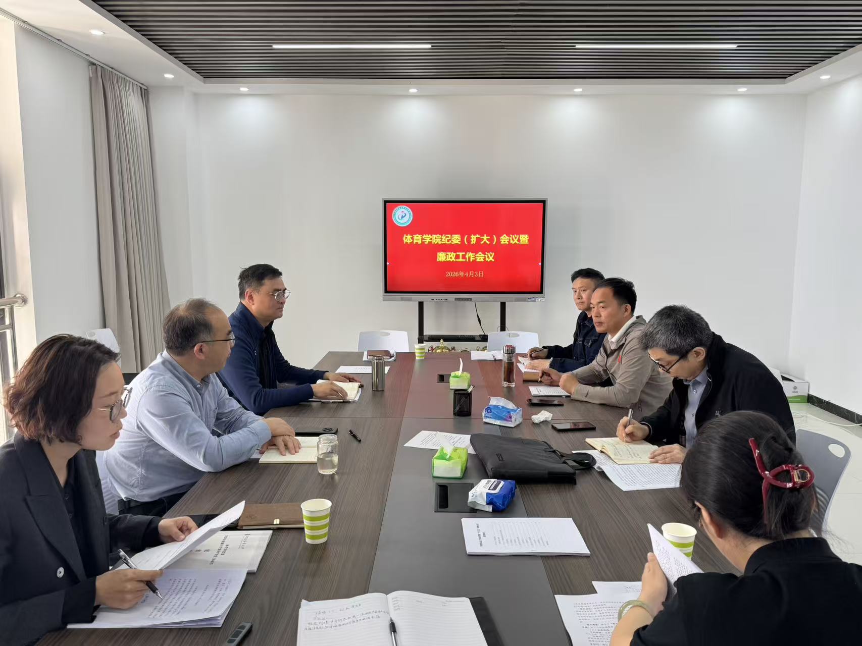 本网讯(通讯员 白杨)4月3日,体育学院在英林讲堂四楼会议室召开纪委(扩大)会议暨廉政工作会议,学习贯彻习近平总书记重要讲话精神,传达上级会议、文件精神,研究部署近期重点工作。党委书记许世明主持并讲话。全体领导班子、各系(室)负责人、教师代表参加会议。